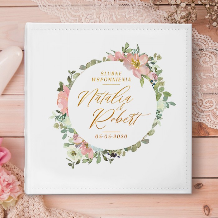 ALBUM ślubny na zdjęcia prezent dla Pary Młodej Kwiatowy Wianek